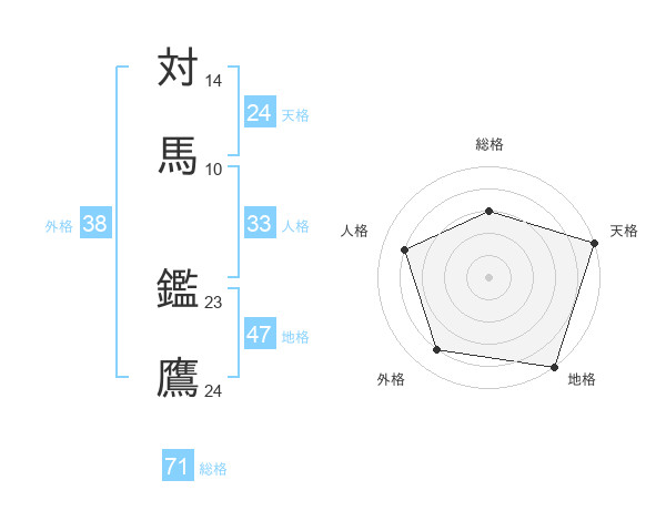 対馬 鑑鷹さんの総格は71画の3点!