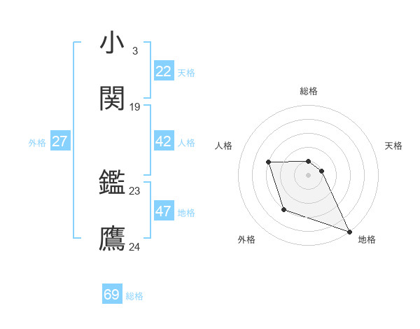 小関 鑑鷹さんを姓名の画数から五運を鑑定