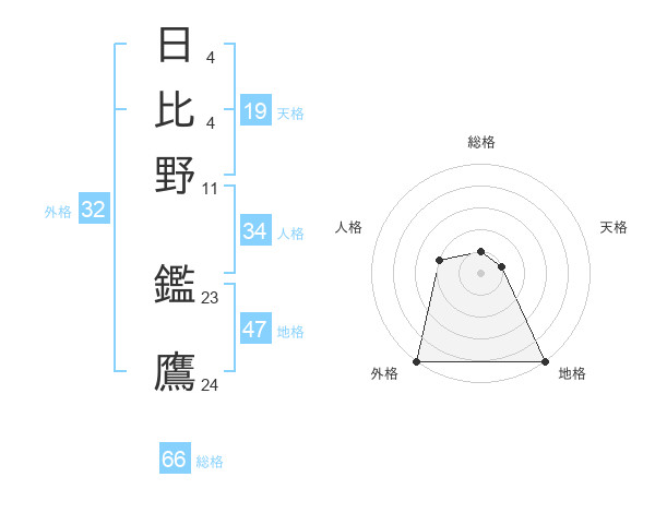 日比野 鑑鷹さんを姓名の画数から五運を鑑定