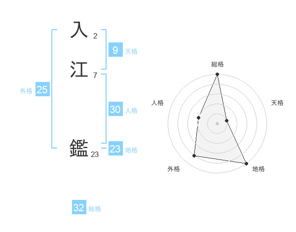 入江 鑑さんの総格は32画の5点!