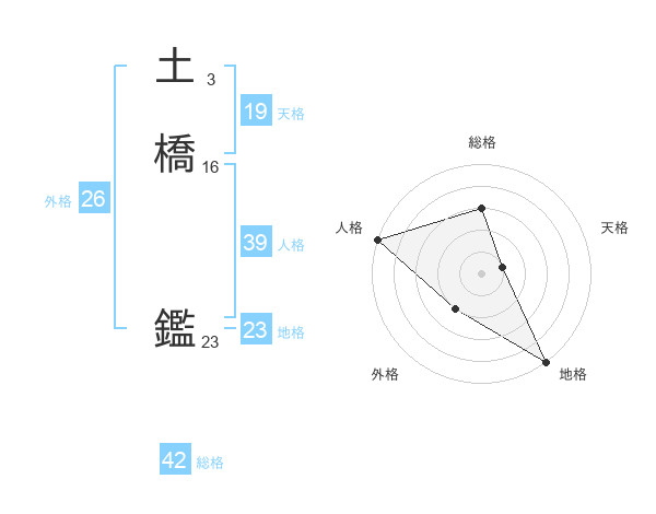 土橋 鑑さんを姓名の画数から五運を鑑定