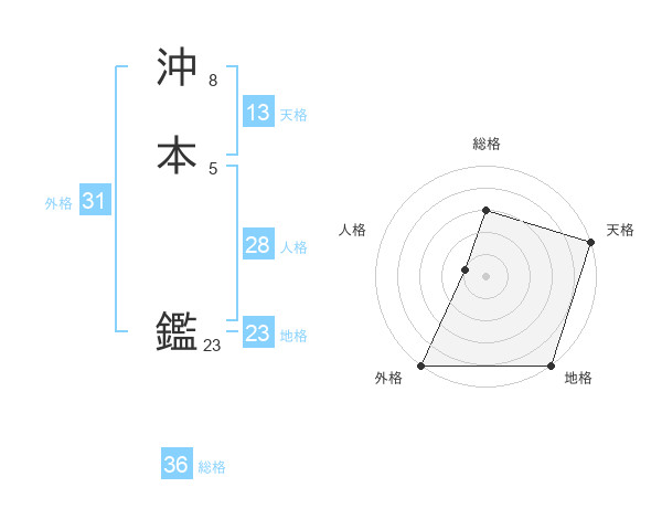 沖本 鑑さんの天格は13画の5点!