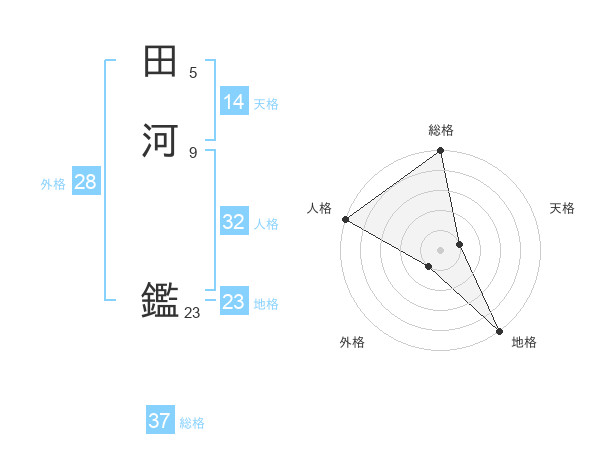 田河 鑑さんの総格は37画の5点!