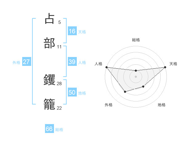占部 钁籠さんを姓名の画数から五運を鑑定