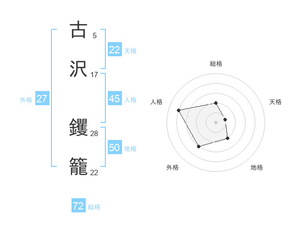 古沢 钁籠さんを姓名の画数から五運を鑑定