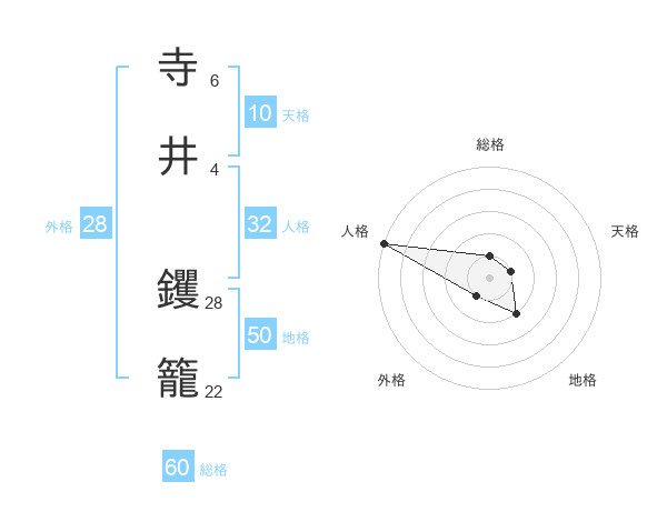 寺井 钁籠さんを姓名の画数から五運を鑑定