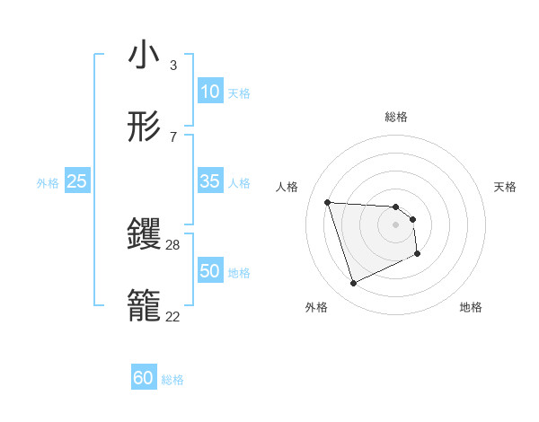小形 钁籠さんの総格は60画の1点!