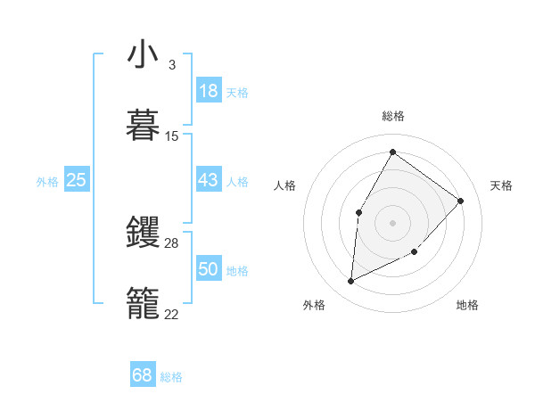 小暮 钁籠さんを姓名の画数から五運を鑑定