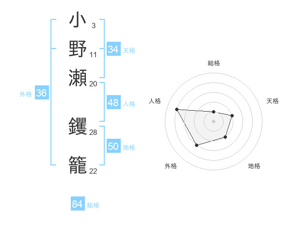 小野瀬 钁籠さんを姓名の画数から五運を鑑定