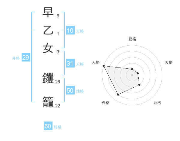 早乙女 钁籠さんを姓名の画数から五運を鑑定