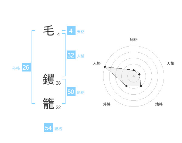 毛 钁籠さんを姓名の画数から五運を鑑定