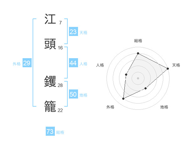 江頭 钁籠さんを姓名の画数から五運を鑑定