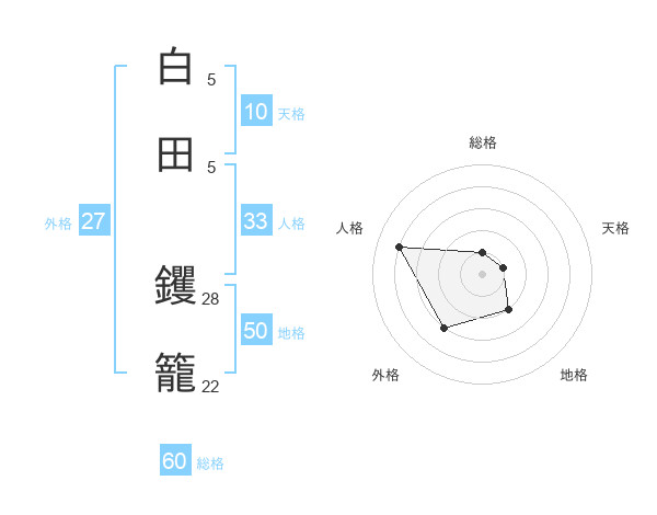 白田 钁籠さんを姓名の画数から五運を鑑定