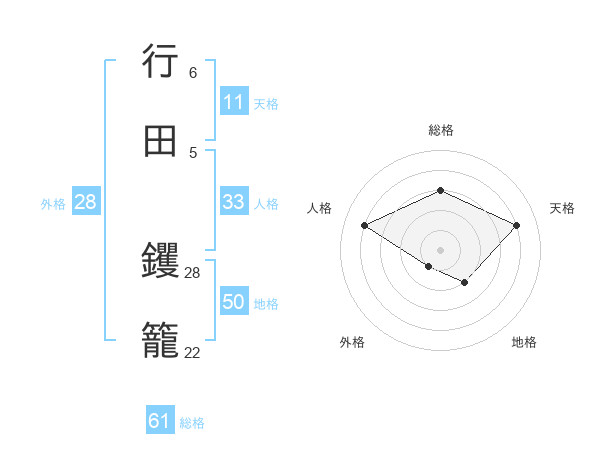 行田 钁籠さんを姓名の画数から五運を鑑定