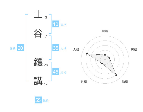 土谷 钁講さんの総格は55画の1点!