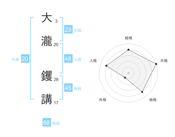大瀧 钁講さんを姓名の画数から五運を鑑定