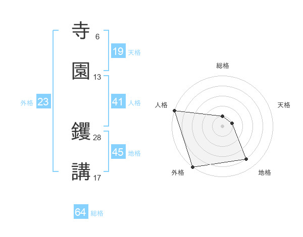 寺園 钁講さんの総格は64画の1点!