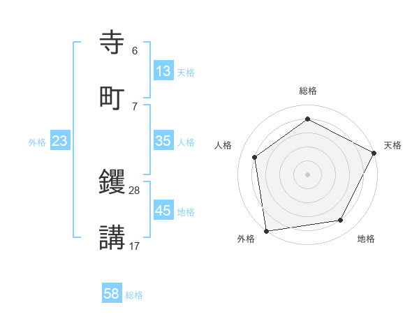 寺町 钁講さんの総格は58画の4点!