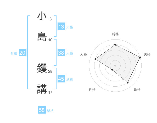 小島 钁講さんの総格は58画の4点!
