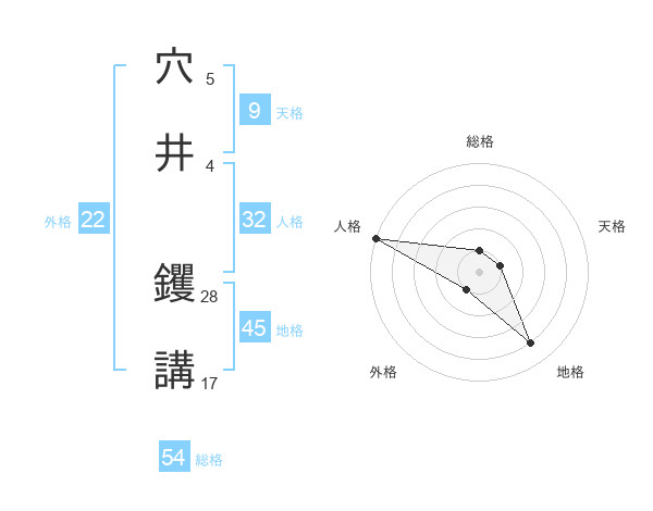 穴井 钁講さんを姓名の画数から五運を鑑定