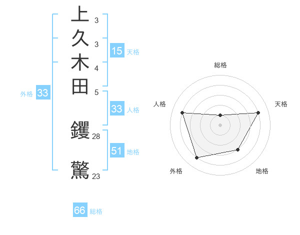 上久木田 钁驚さんの外格は33画の4点!