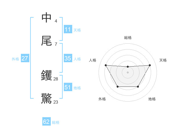 中尾 钁驚さんの総格は62画の1点!