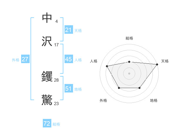 中沢 钁驚さんの総格は72画の2点!