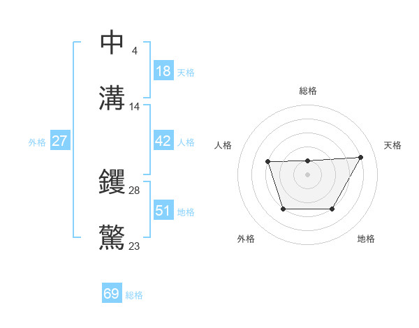中溝 钁驚さんの総格は69画の1点!