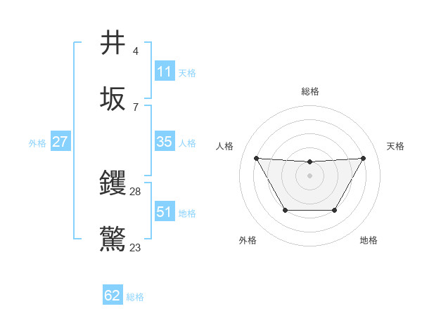 井坂 钁驚さんを姓名の画数から五運を鑑定