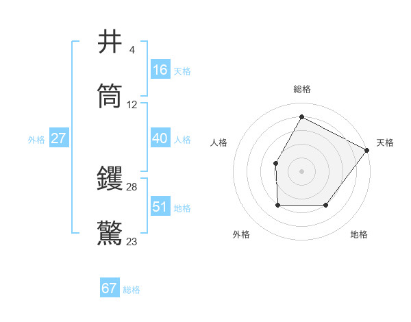 井筒 钁驚さんを姓名の画数から五運を鑑定