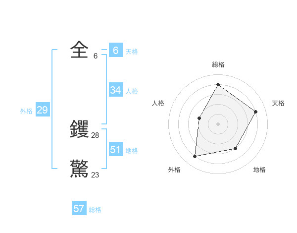全 钁驚さんの総格は57画の4点!