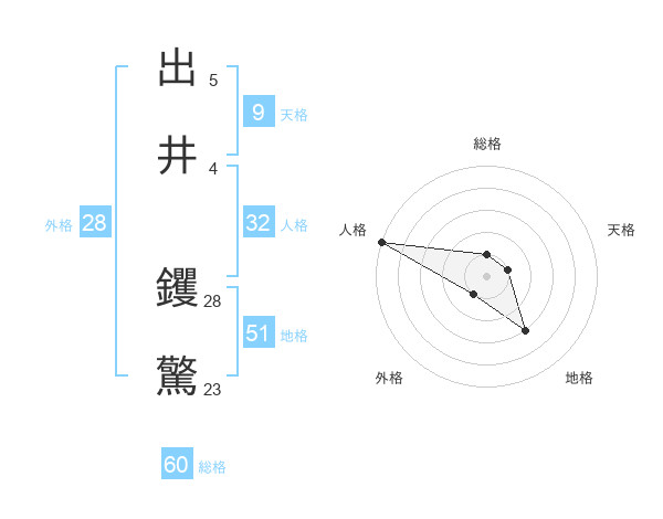 出井 钁驚さんを姓名の画数から五運を鑑定