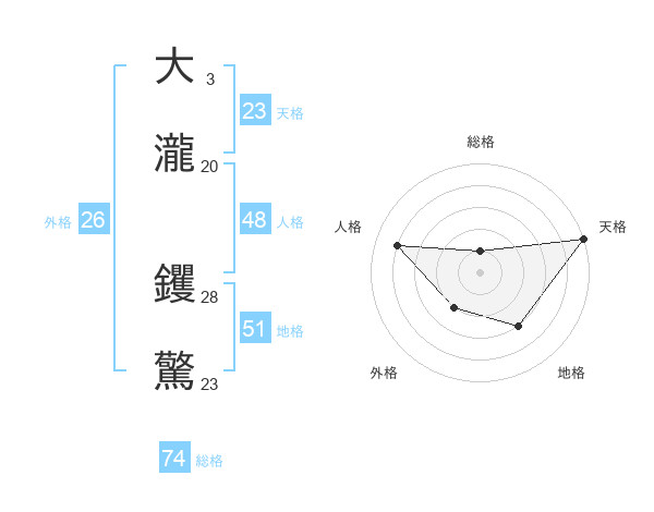 大瀧 钁驚さんを姓名の画数から五運を鑑定