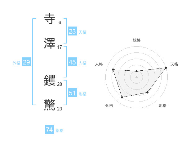 寺澤 钁驚さんを姓名の画数から五運を鑑定