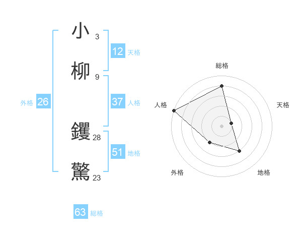 小柳 钁驚さんを姓名の画数から五運を鑑定