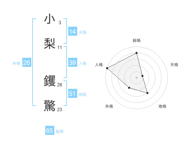 小梨 钁驚さんの総格は65画の4点!