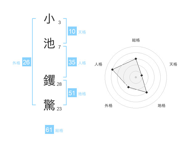 小池 钁驚さんを姓名の画数から五運を鑑定