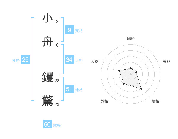 小舟 钁驚さんを姓名の画数から五運を鑑定