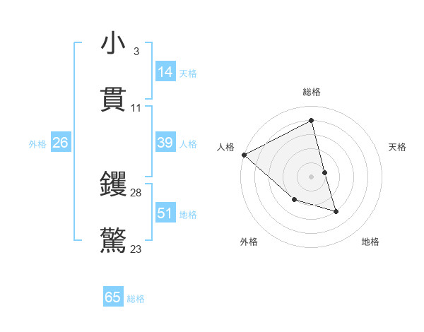 小貫 钁驚さんの総格は65画の4点!