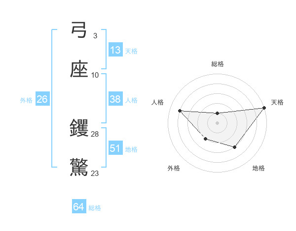 弓座 钁驚さんを姓名の画数から五運を鑑定