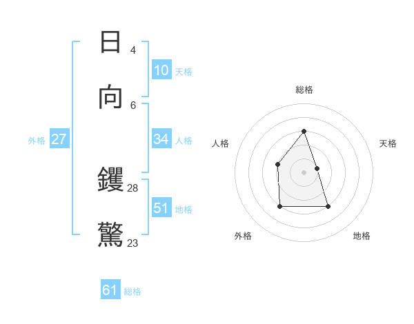 日向 钁驚さんを姓名の画数から五運を鑑定