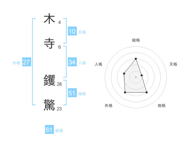 木寺 钁驚さんを姓名の画数から五運を鑑定