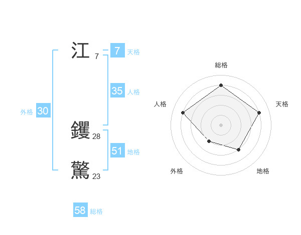 江 钁驚さんの総格は58画の4点!