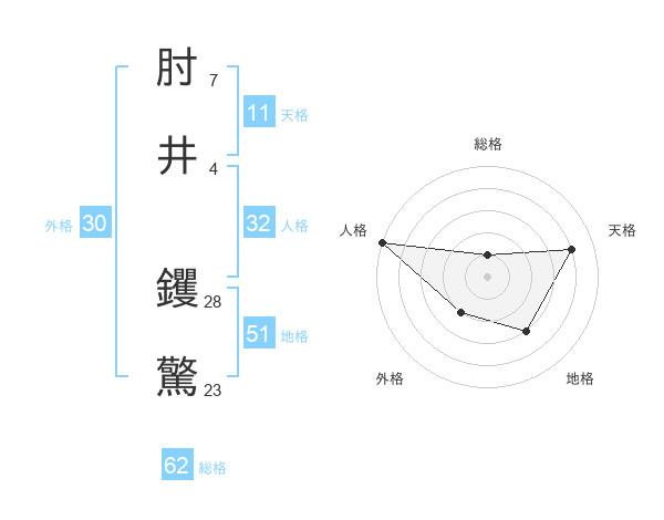 肘井 钁驚さんを姓名の画数から五運を鑑定
