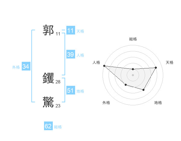 郭 钁驚さんを姓名の画数から五運を鑑定