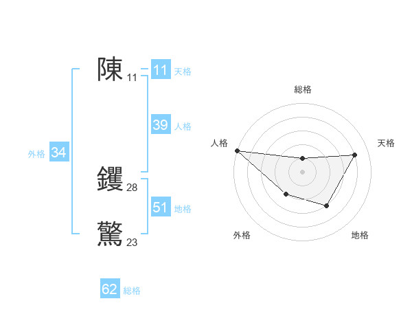 陳 钁驚さんの地格は51画の3点!