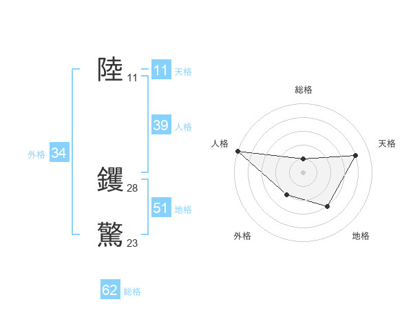 陸 钁驚さんを姓名の画数から五運を鑑定