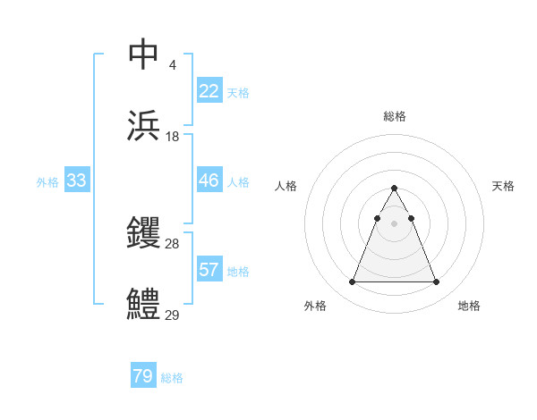 中浜 钁鱧さんの総格は79画の2点!