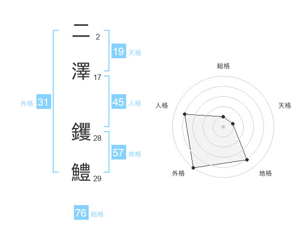 二澤 钁鱧さんを姓名の画数から五運を鑑定