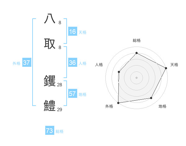 八取 钁鱧さんの総格は73画の4点!